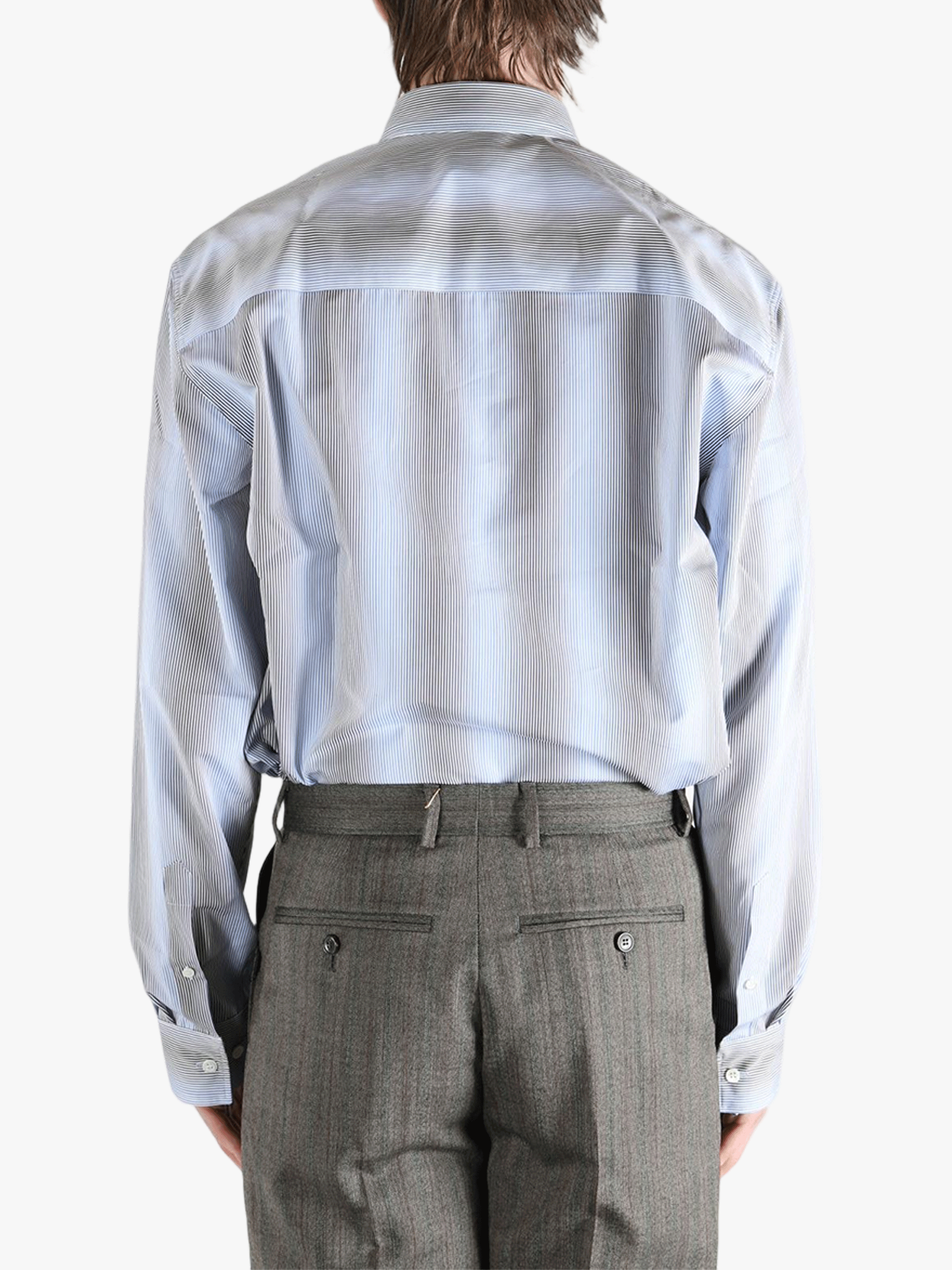 Blue shirt worn by a person, showing the shirt'fit